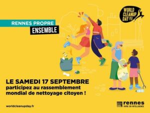 Déambulation à l’occasion d’un rassemblement de ramassage de déchets (World CleanUp Day) sur Rennes (35).